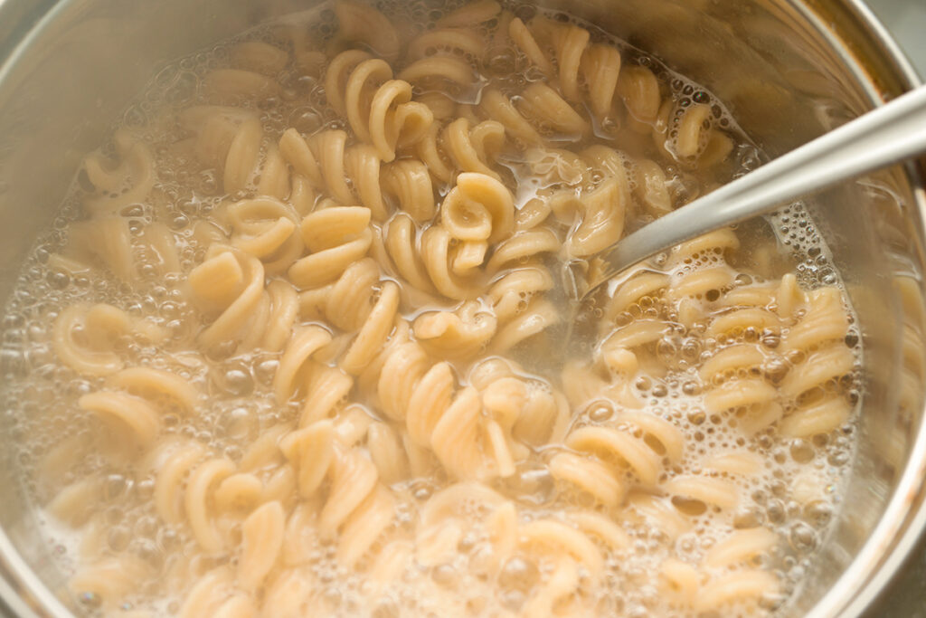 If you depend solely on the boiling water to keep the pasta moving, you’re in for an unpleasant surprise at the colander. Pasta that sticks together or to the bottom of the pot tears and cooks unevenly, taking away from the overall quality of your dish. To ensure the best results, stir frequently from start to finish so individual noodles or shapes stay separated.